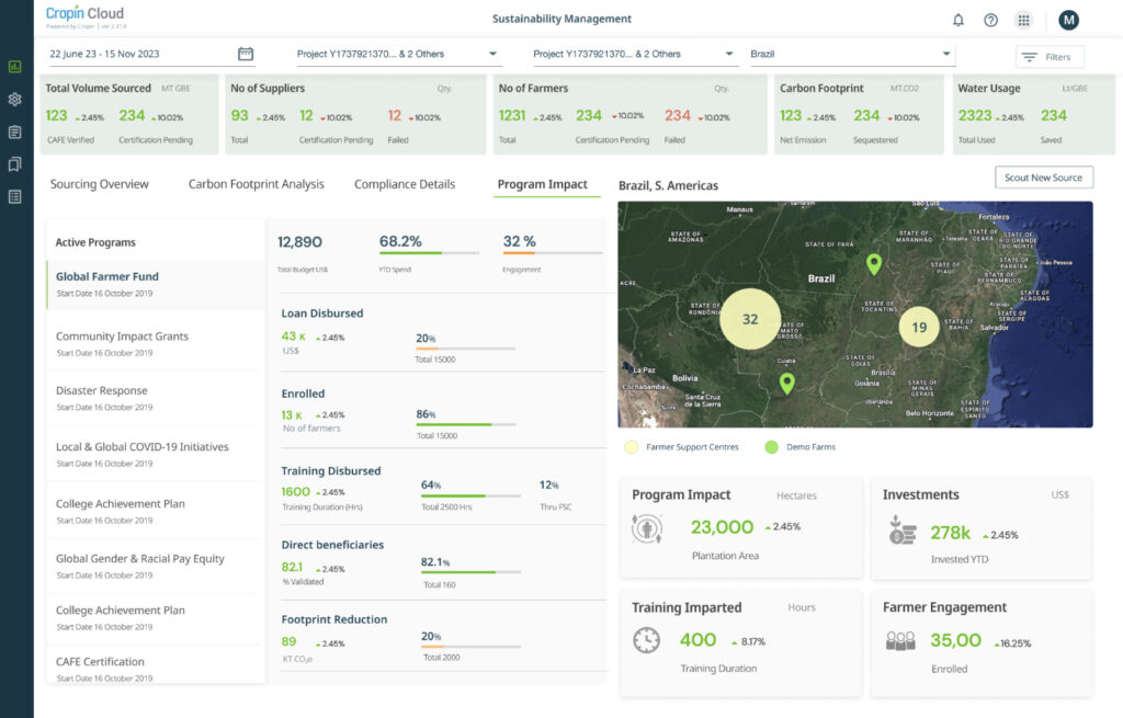 Adopting climate-smart agriculture (CSA) practices like no-tillage, precision farming, intelligent land use, etc., will reduce agricultural emissions and help mitigate climate change. Monitoring standards and adopting legislation and regulations can ensure that the farming community practices sustainable agriculture. Digitizing farming practices on the Cropin platform enables constant digital monitoring and provides verifiable metrics for sustainability reporting.