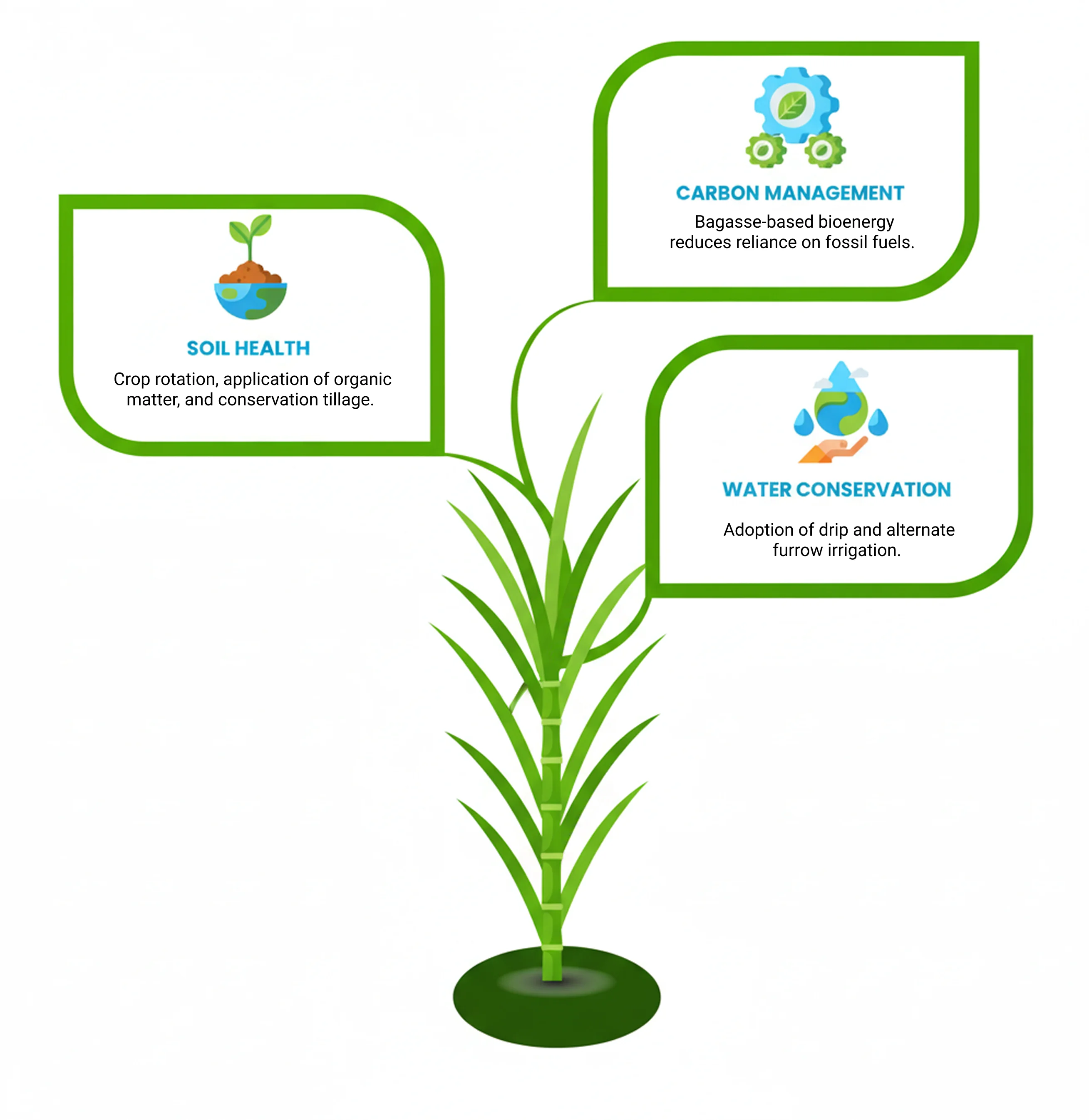 - Residue management: Instead of burning cane trash, smart farming relies on mulching to improve soil organic matter.