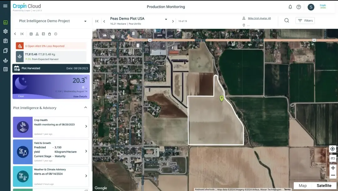 Cropin’s Crop Stage and Progression model identifies the current growth stage of a crop, estimates its progression through the lifecycle, and predicts the optimal harvest window, while also assessing the crop’s growth rate at the plot level.