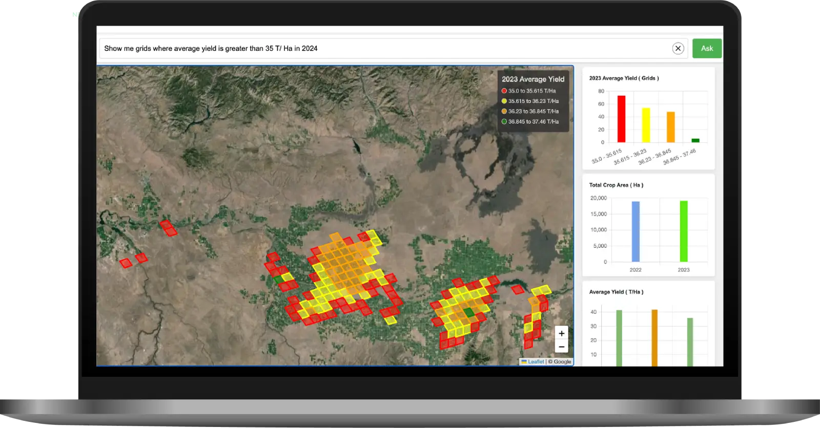 A dynamic indicator that shows active crop or sowing areas, helping clearly distinguish agri land from non-agri land.